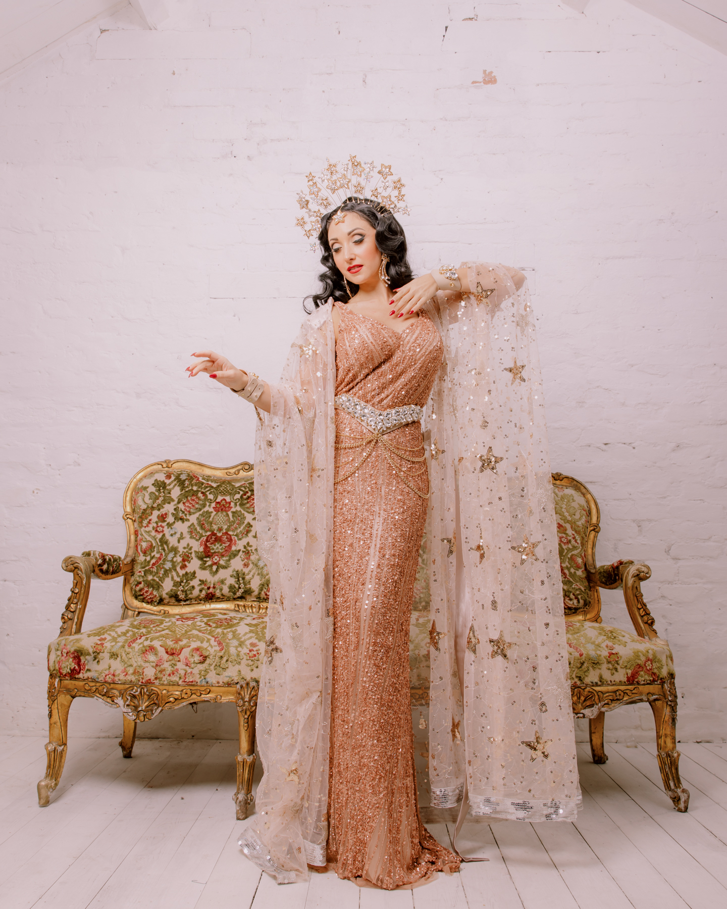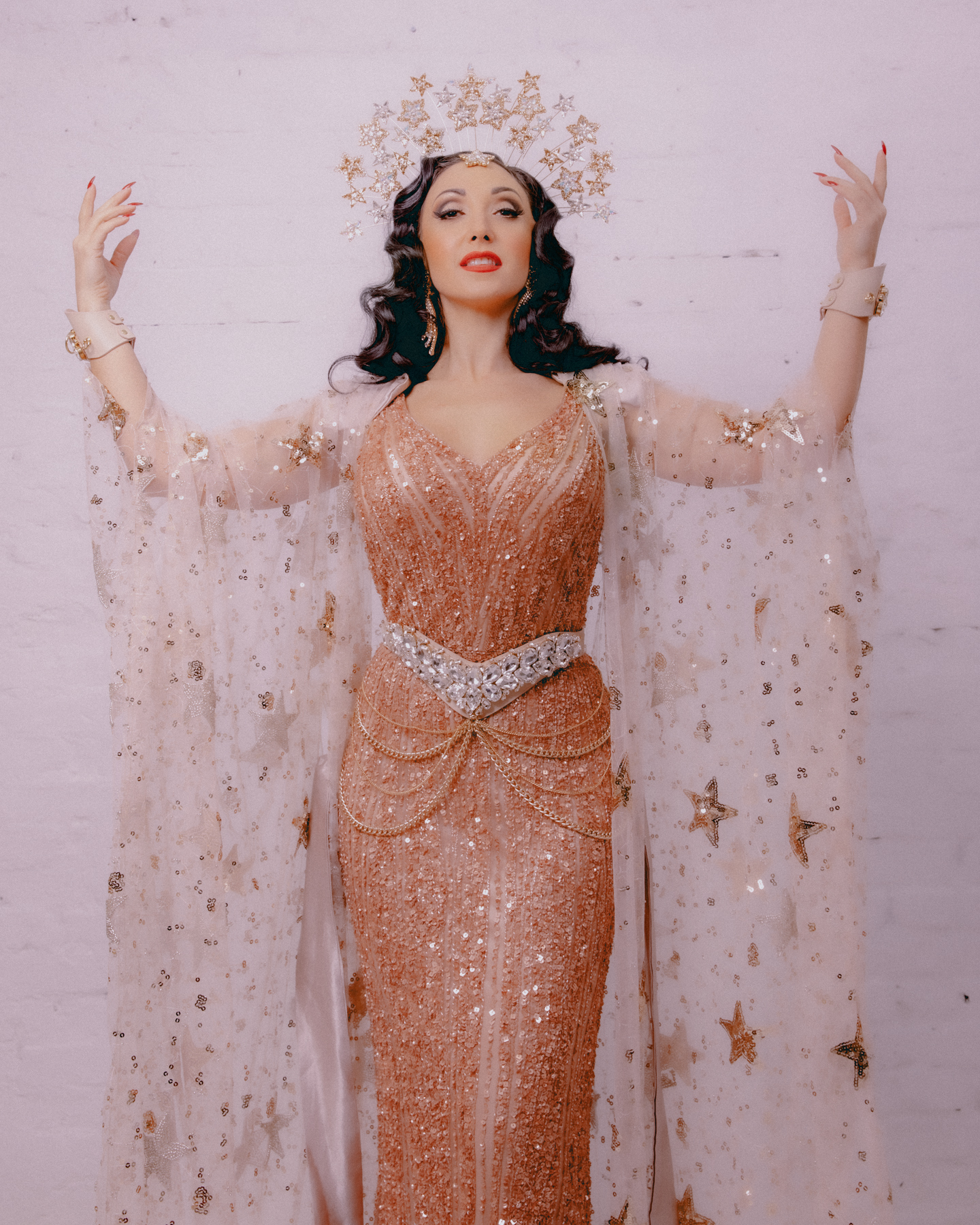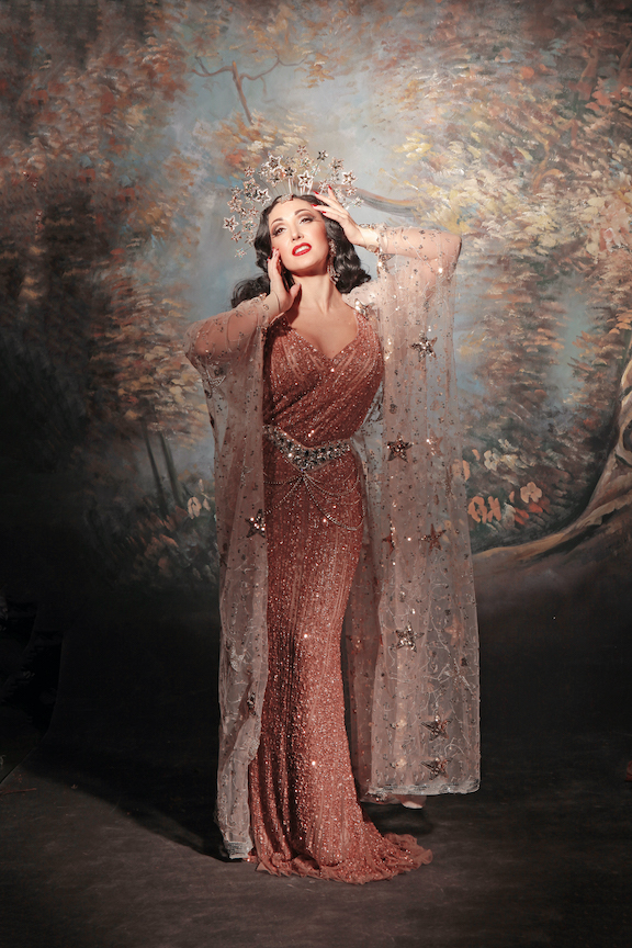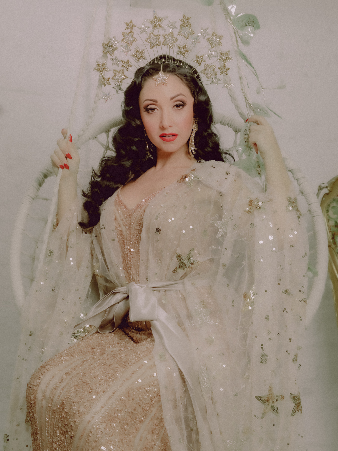 Jolie is working on her newest act inspired by the elegance of Ziegfeld Follies iconic girl, Hedy Lamar and head to toe adorned with stars she’s choreographed a delicate dance with her Moon.